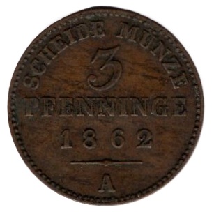 Prussia 3 Pfennig 1862 A Wilhelm I.