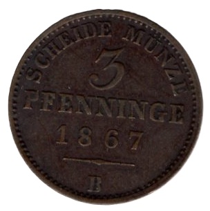 Prussia 3 Pfennig 1867 B Wilhelm I.