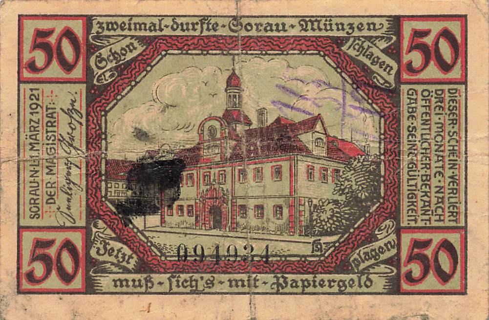 Sorau Lower Lusatia Żary emergency bank note 1921