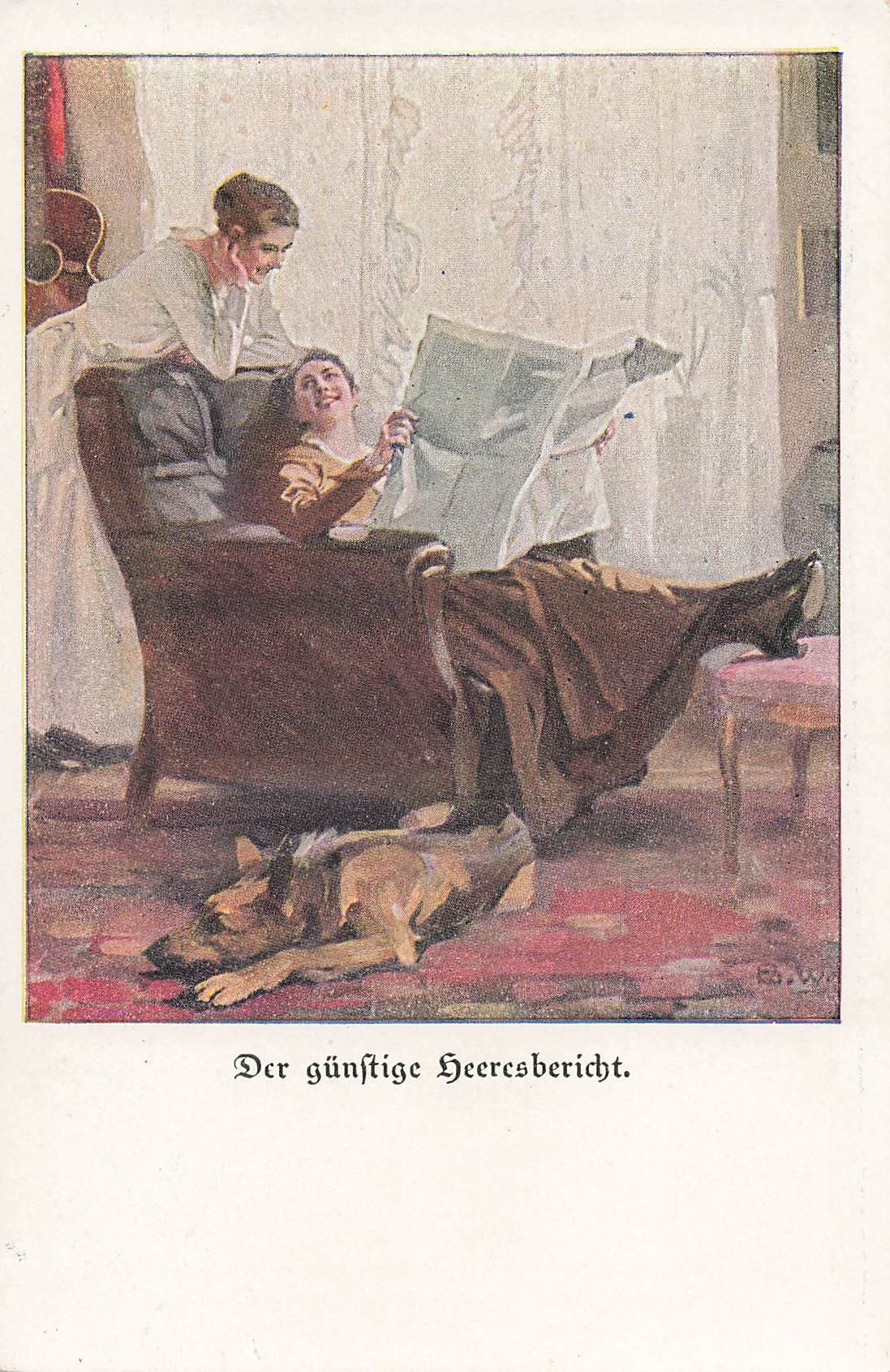 The favorable army report No. 13, artist's card by Brynolf Wennerberg, B.W., depicting women reading, circa 1915
