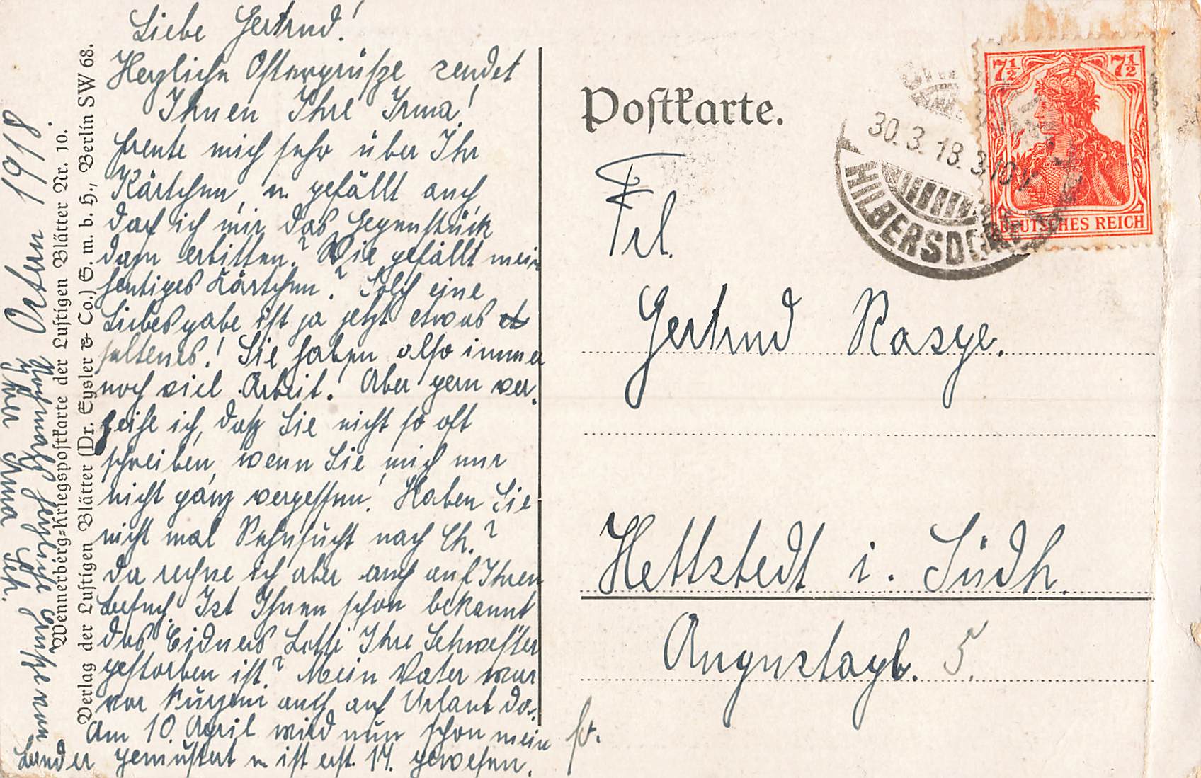 The Love Gift No. 10 Artist Card Brynolf Wennerberg B.W. o 1918