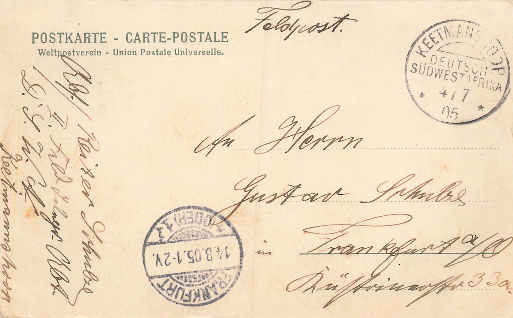 This is how we live - sometimes German South West Africa Field Post Keetmanshoop 4.7.1905