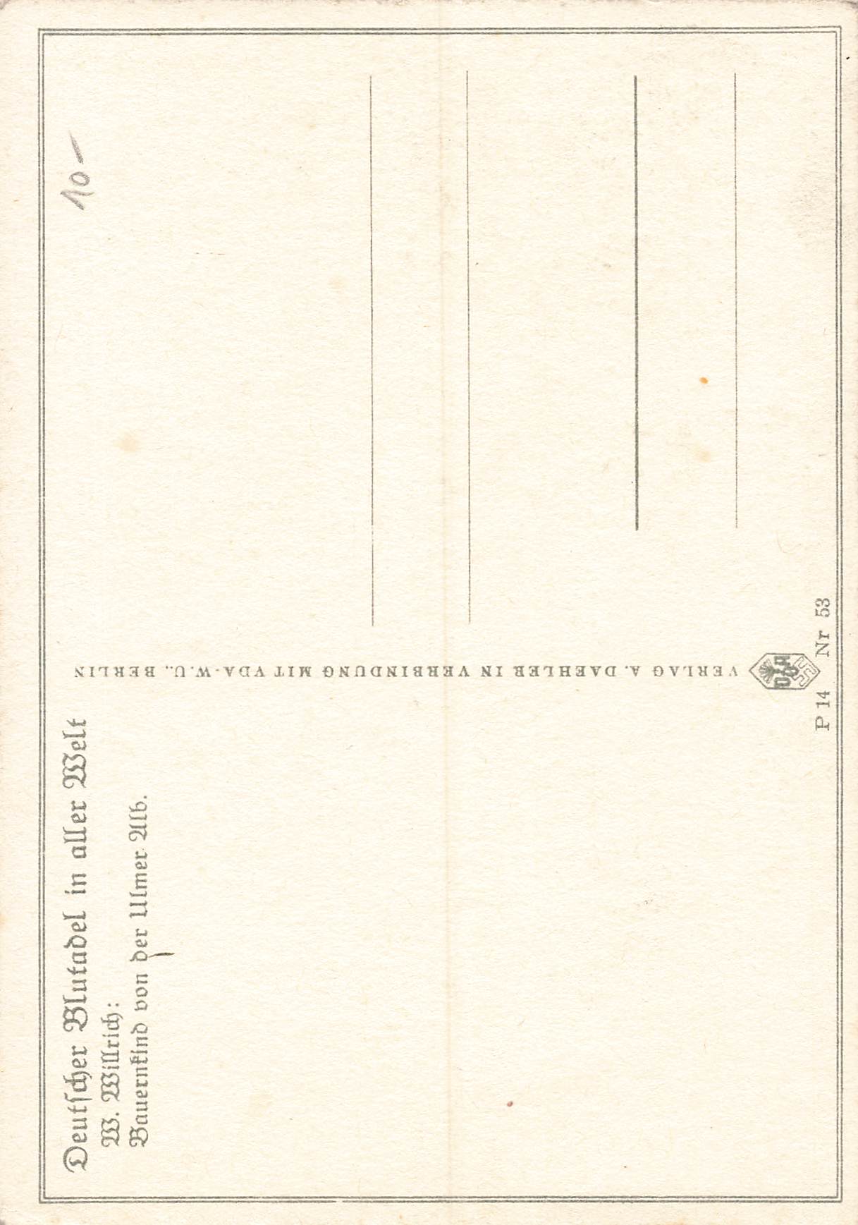 VDA P14 Nr.53 German blood nobility Farmer child of the Ulmer Alb artist card W. Willrich * around 1940