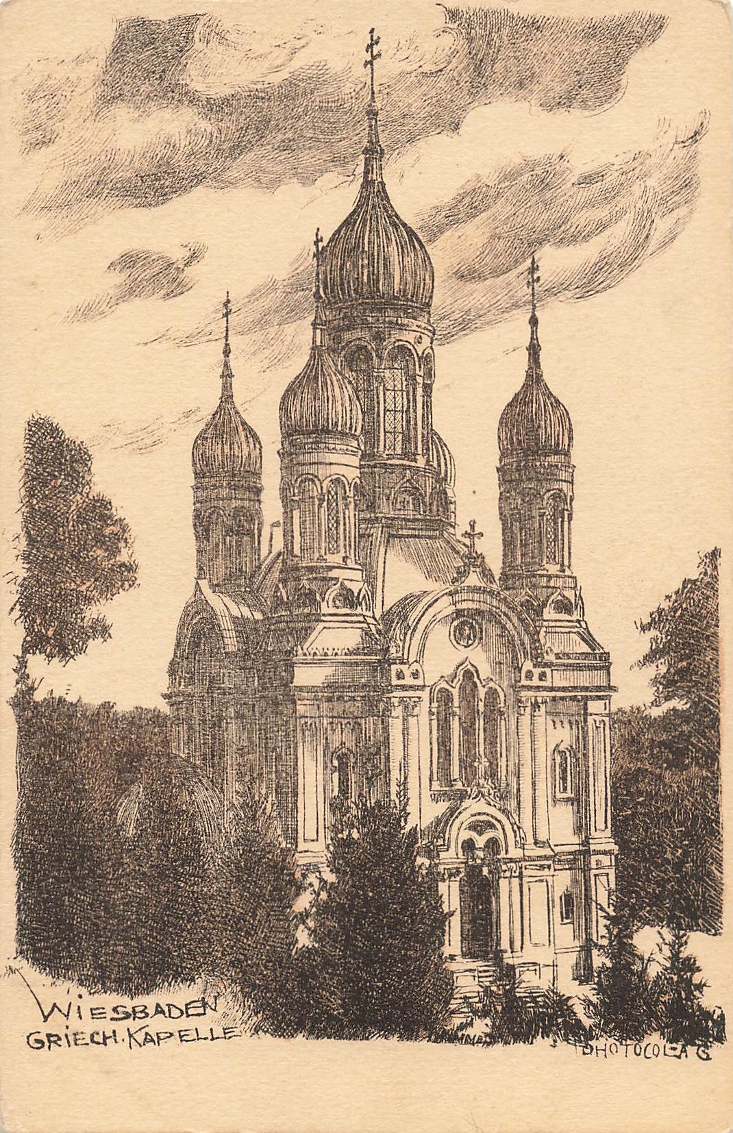 Wiesbaden Greek Chapel artist card * approx. 1900